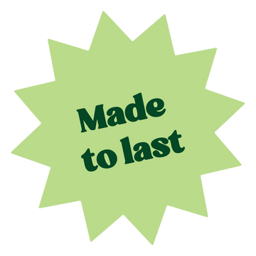 Green starburst graphic with 'Made to last' text on a white background